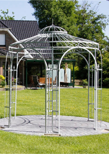 Notre arche de rosiers de Cremona séduit par sa forme ronde classique et très moderne. Cremona semble délicate, mais est solidement conçue et peut facilement supporter la charge des plantes grimpantes était debout.