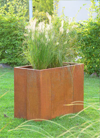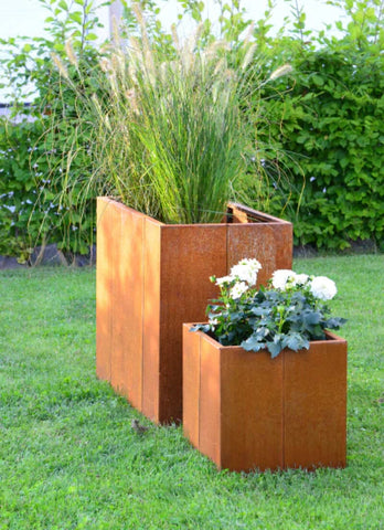 Lorsque vous recevez votre nouveau parterre surélevé, il présente d'abord une surface métallique gris argenté sans rouille. La patine de rouille typique de l'acier Corten se forme dès que le parterre surélevé est exposé aux intempéries. La rouille se forme en quelques semaines ou mois. Pour cela, une alternance de sécheresse et d'humidité est nécessaire.